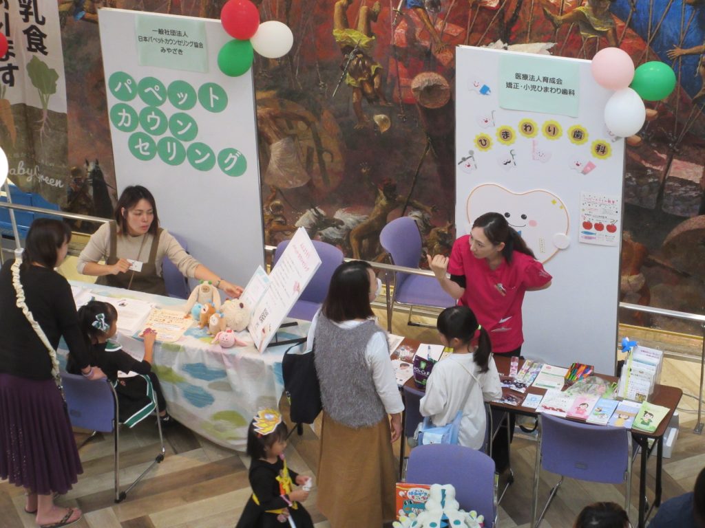 紫陽花ホールでは、毎年人気の似顔絵コーナーやイベントコーナーをはじめ、宮崎県内で子育て支援をしている団体・企業・行政のブース出展ブースが並びました。